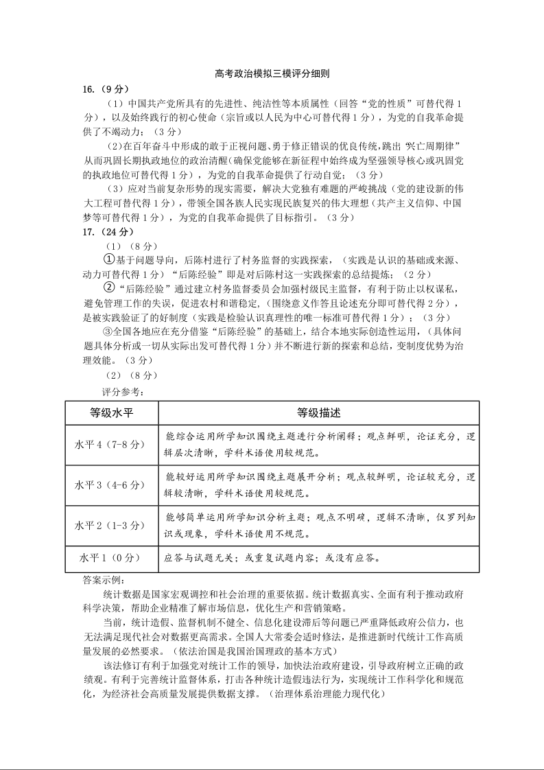 山东省济宁市2024.5高三年级第三次模拟政治答案
