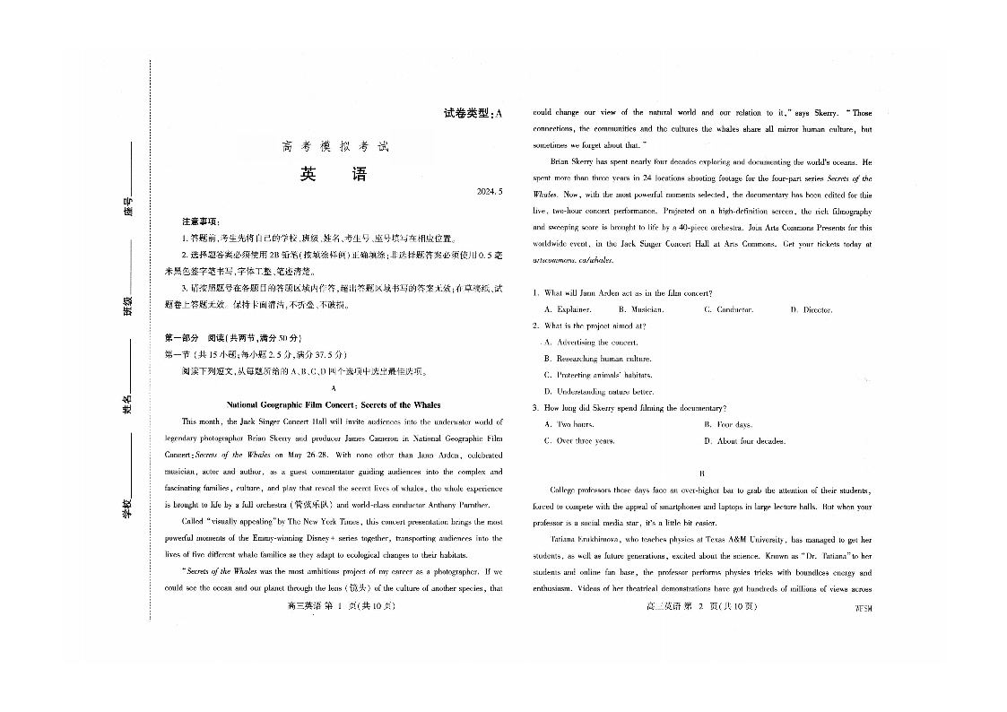山东省潍坊市2024.5高三年级第三次模拟英语