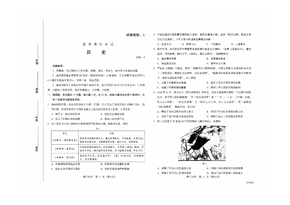 山东省潍坊市2024.5高三年级第三次模拟历史