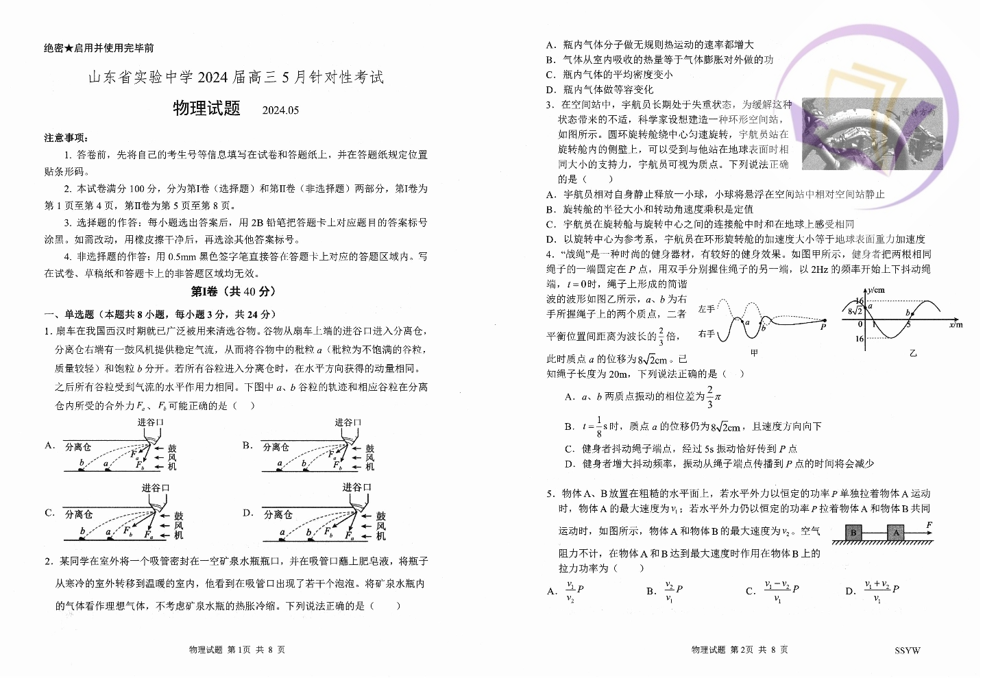 山东省实验中学2024.5高三年级针对性考试物理