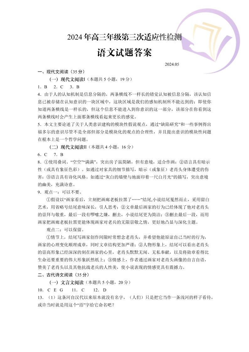 1山东省青岛市2024.5高三年级第三次模拟语文答案