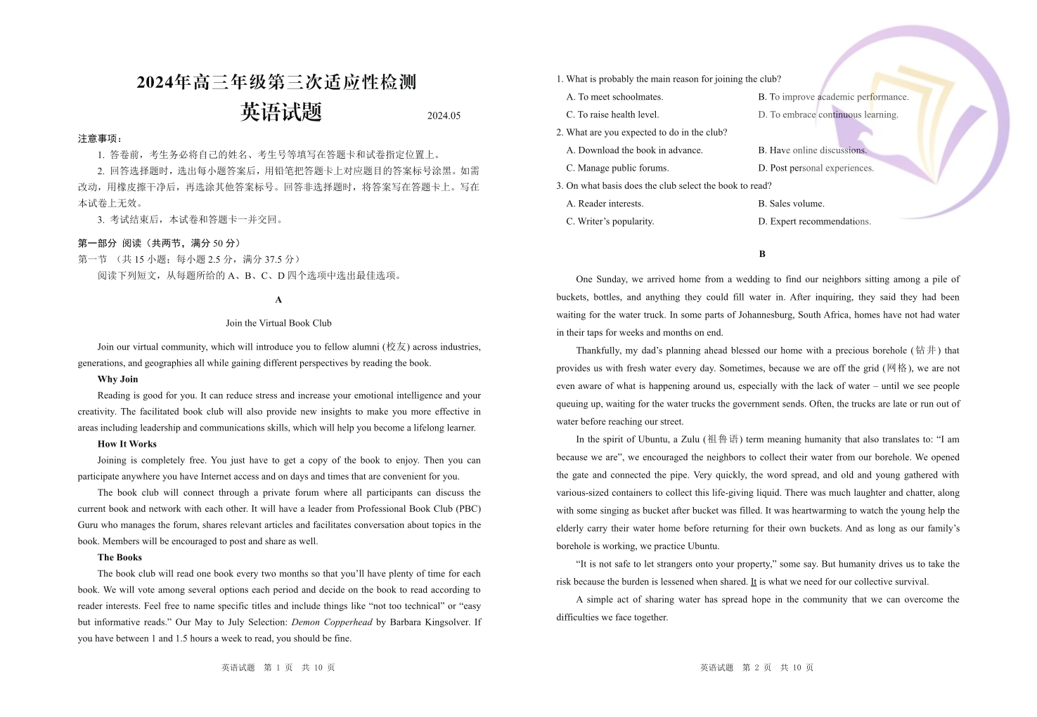 3山东省青岛市2024.5高三年级第三次模拟英语