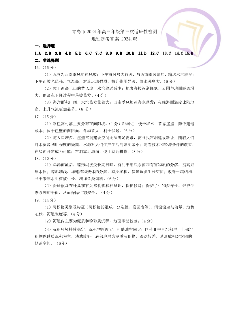 山东省青岛市2024.5高三年级第三次模拟地理答案