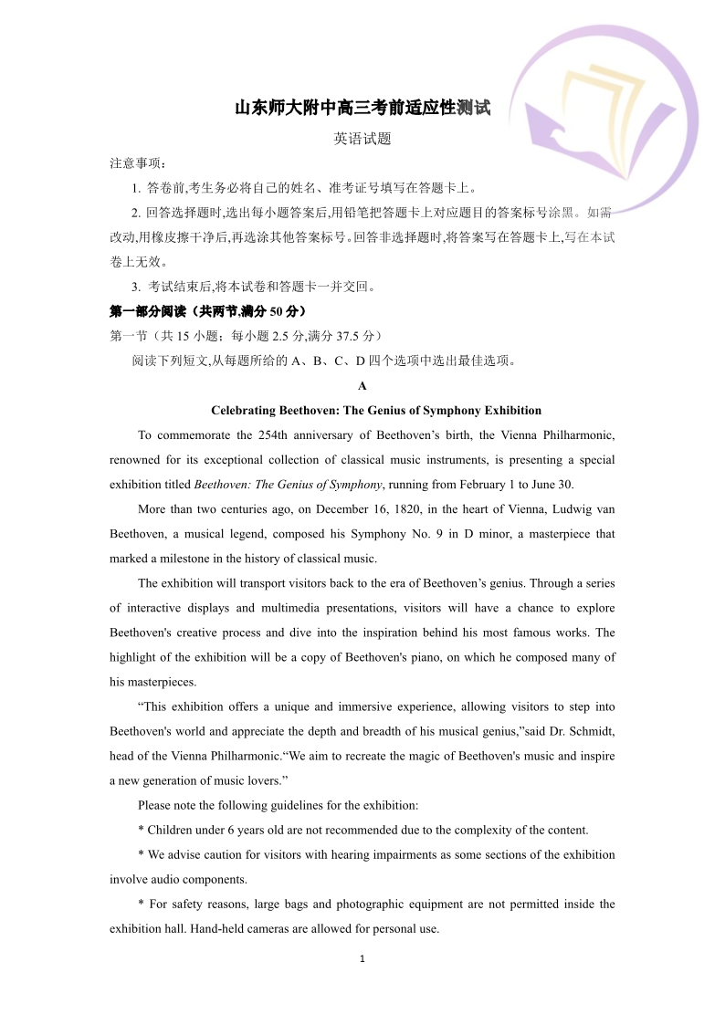 3山东省师大附中2024.6高三年级考前模拟英语