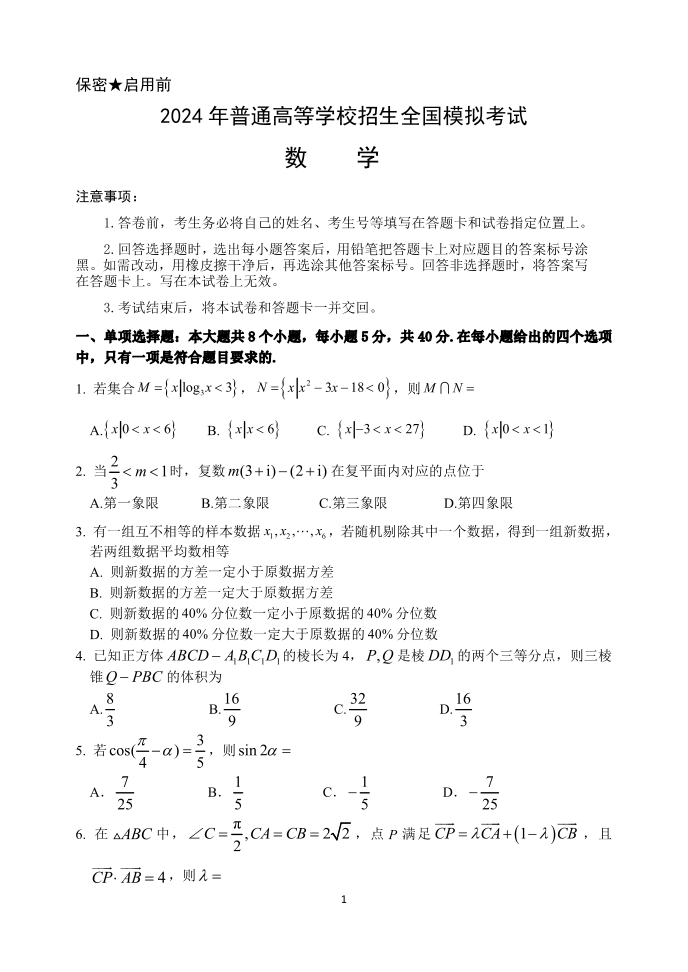 2山东省潍坊市区域2024.6高三年级考前热身卷数学