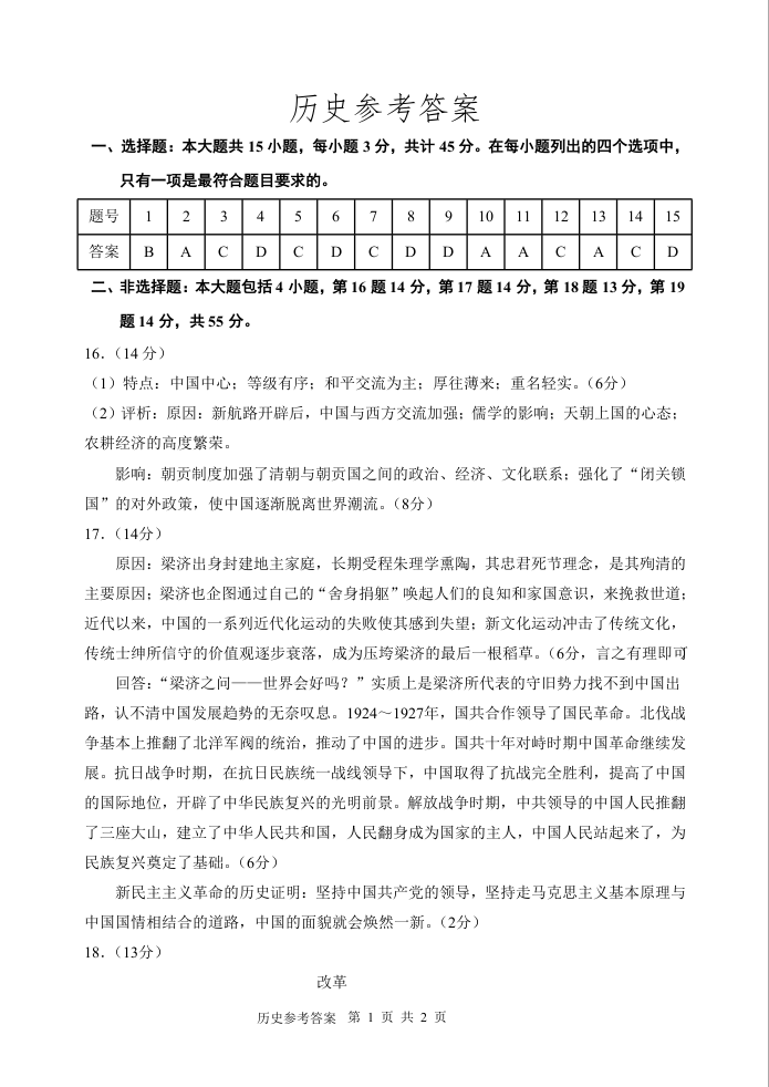 山东省潍坊市区域2024.6高三年级考前热身卷历史答案