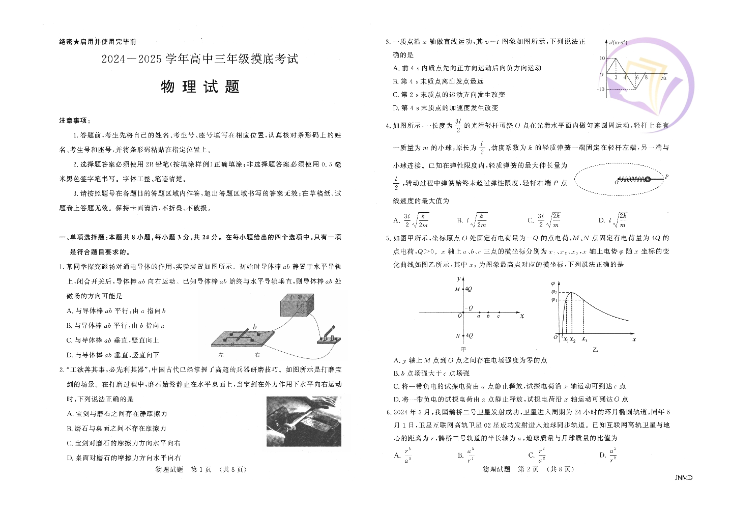 山东省济南市2024.9高三开学统一摸底考试物理