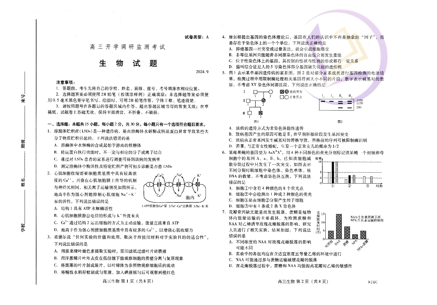 山东省潍坊市2024.9高三开学调研监测试题生物