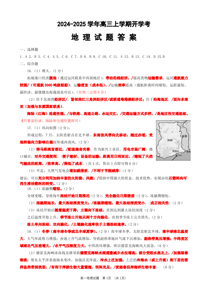 山东省济南市2024.9高三开学统一摸底考试地理答案