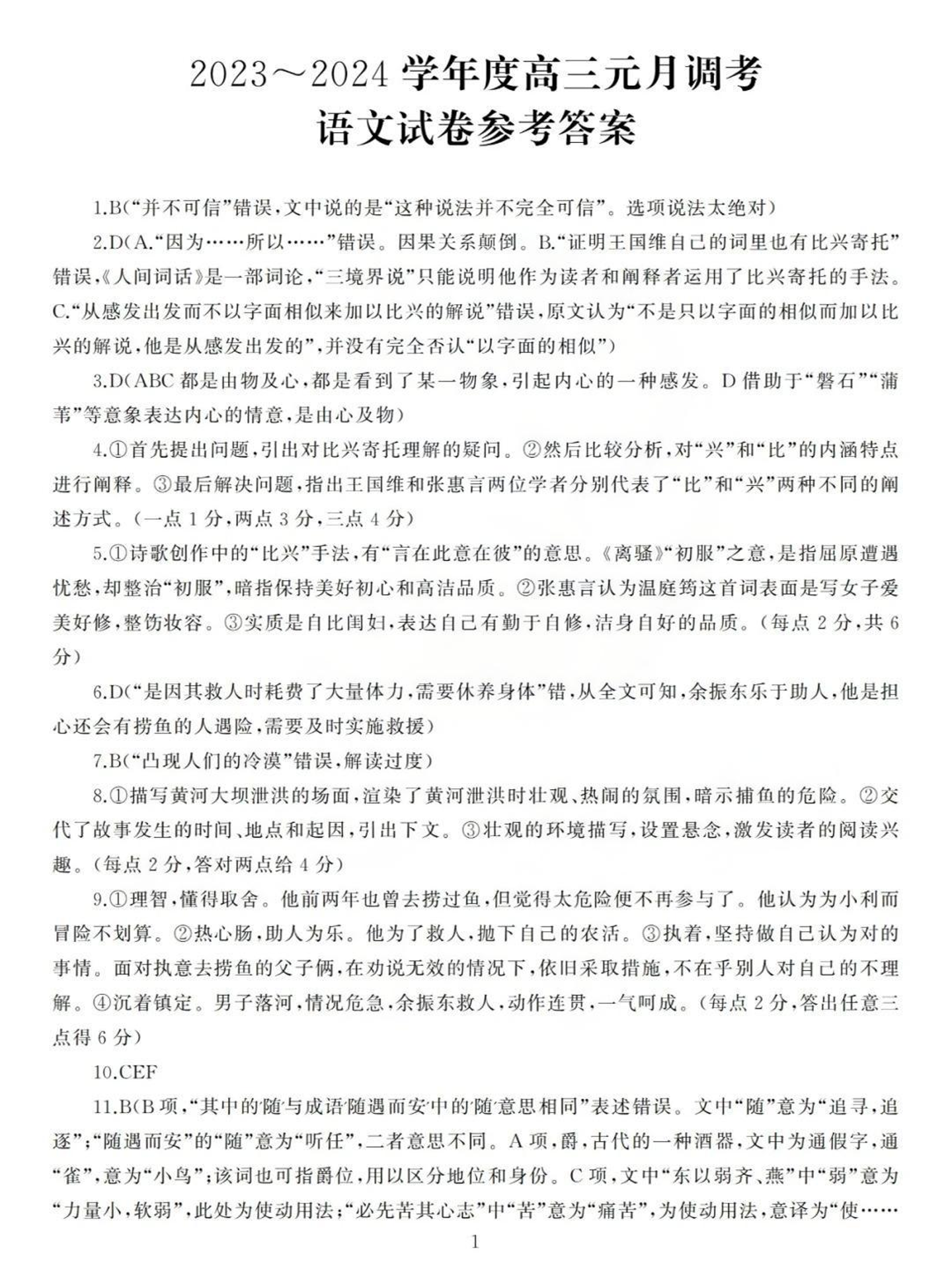 湖北省武汉市江岸区2023-2024学年高三上学期元月调考 语文答案