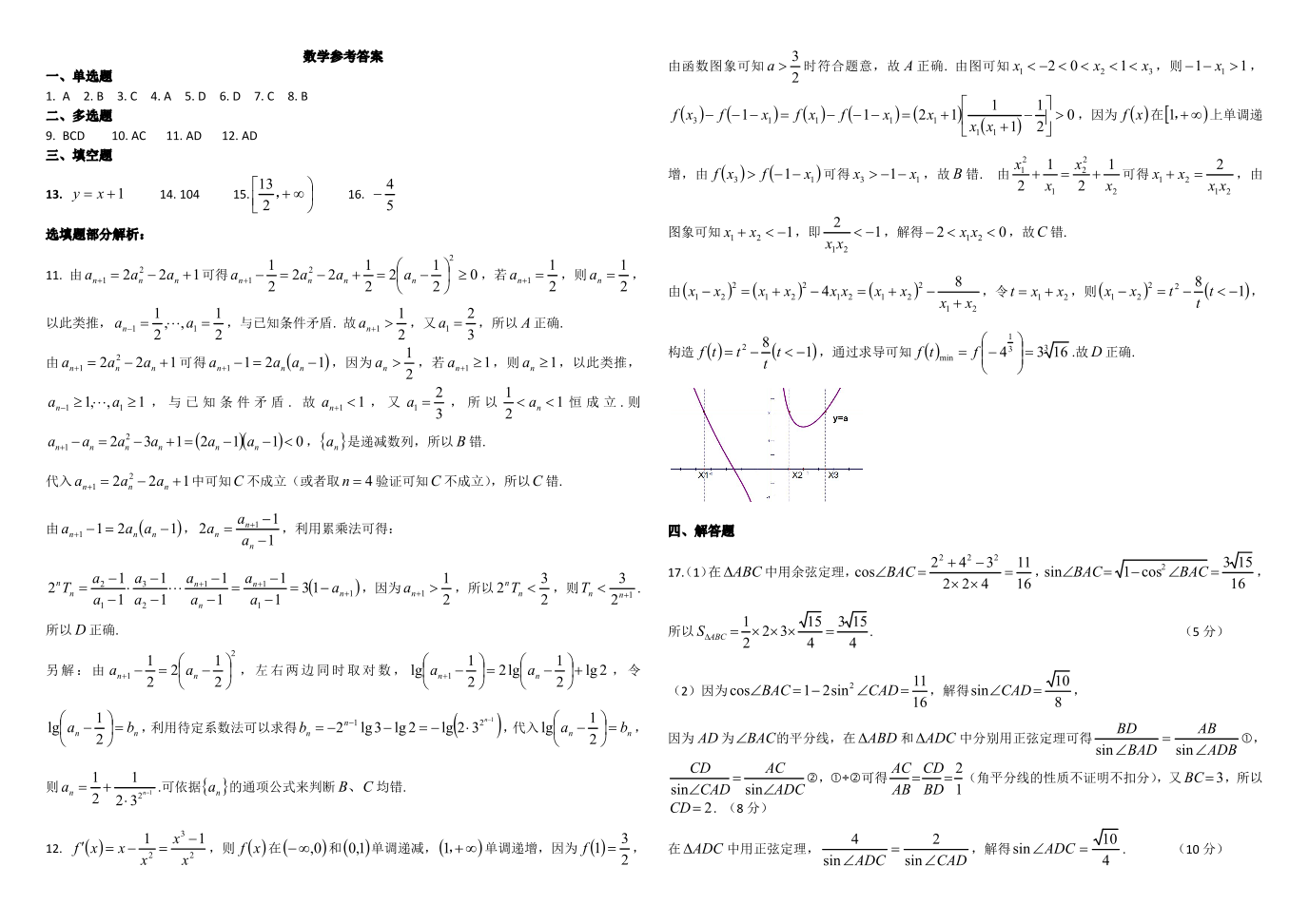 湖北省腾云联盟2023-2024学年高三上学期12月联考 数学答案