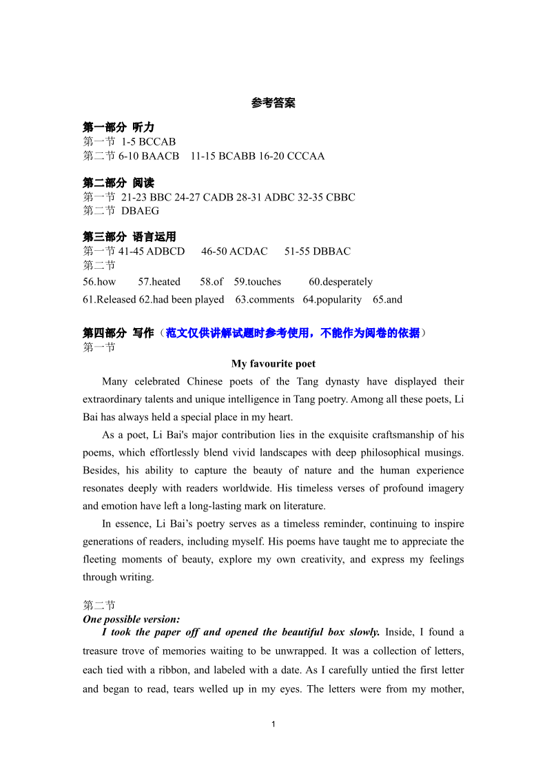 湖北省部分重点中学2024届高三上学期第一次联考 英语答案