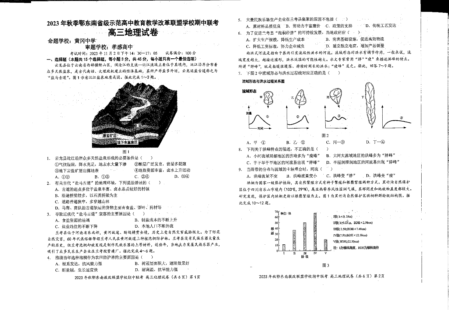 湖北省鄂东南省级示范高中教育教学改革联盟学校2023-2024学年高三上学期期中联考 地理