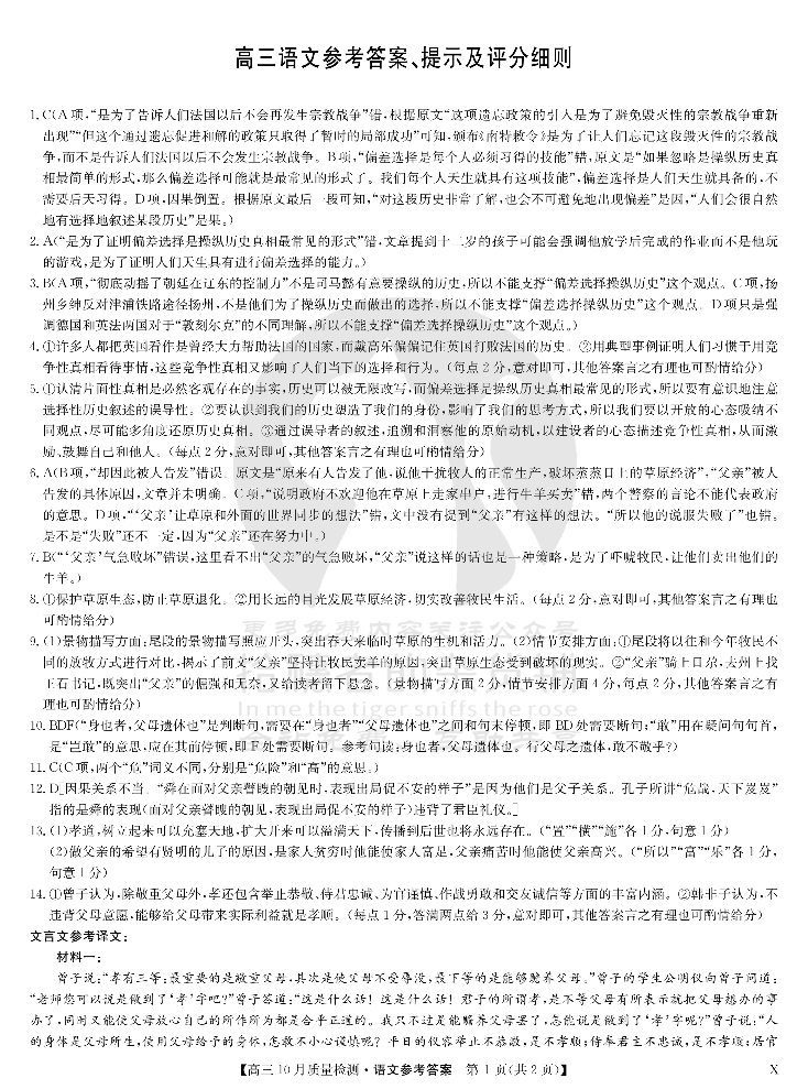 湖北省九师联盟2024届高三10月质量检测 语文答案