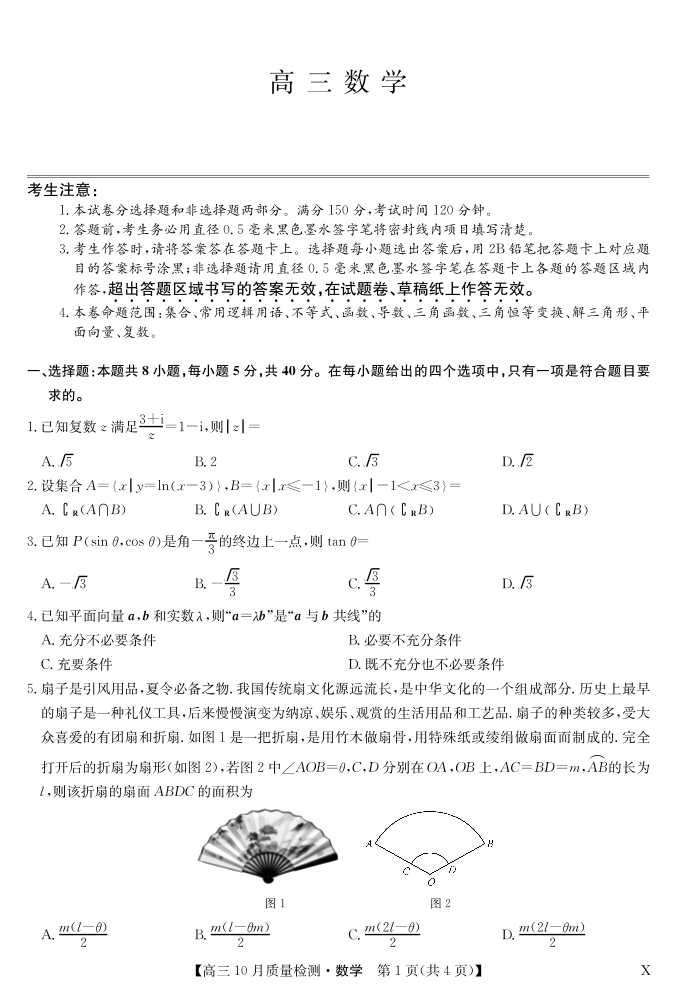 湖北省九师联盟2024届高三10月质量检测 数学