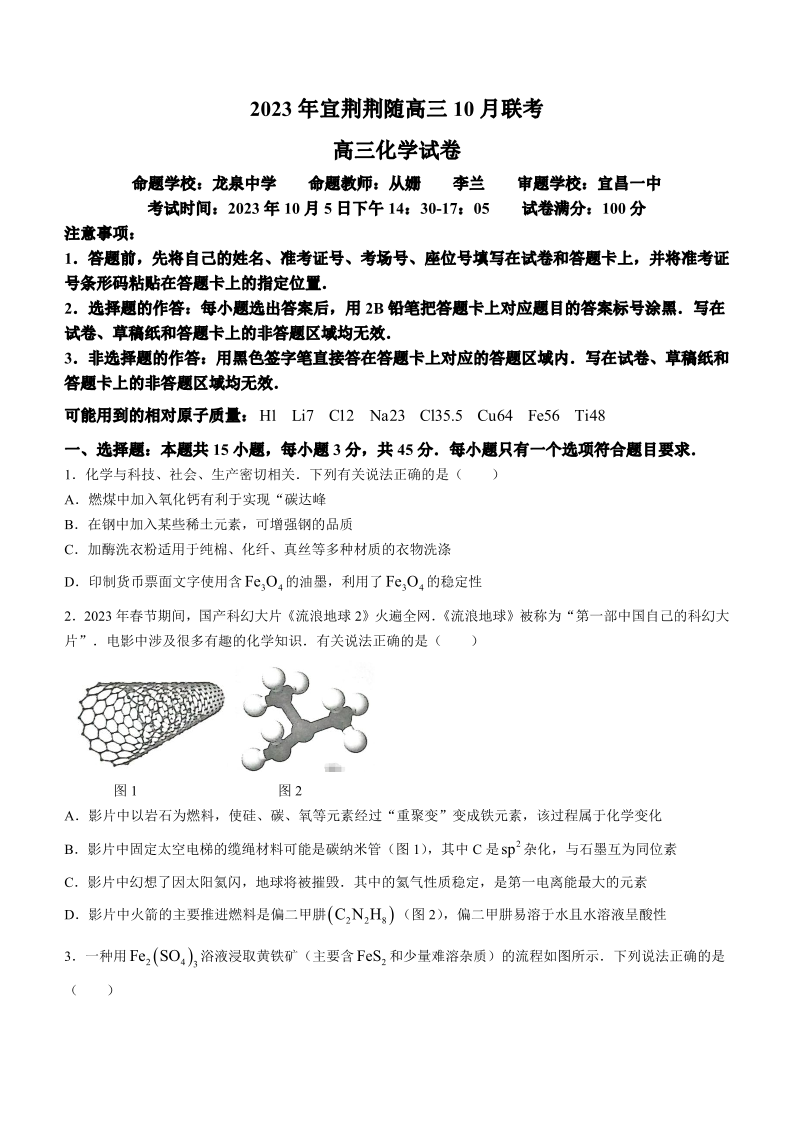 湖北省宜荆荆随2023-2024学年高三上学期10月联考 化学