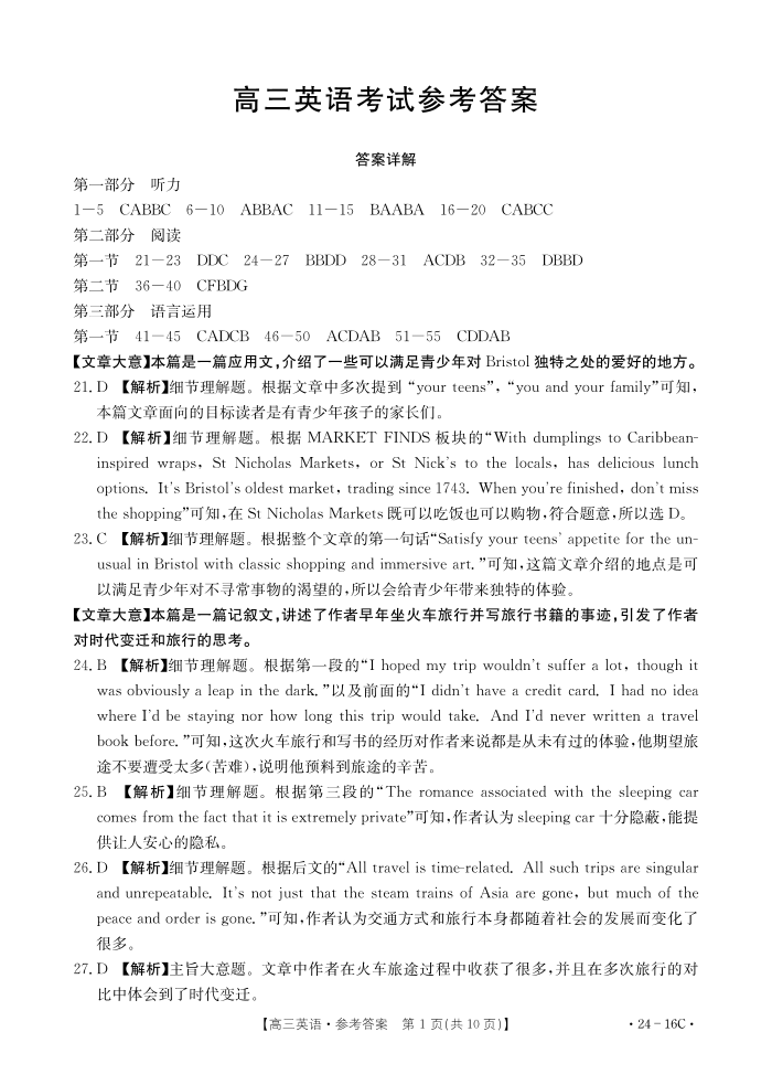 湖北省部分学校2023-2024学年高三上学期10月月考 英语答案