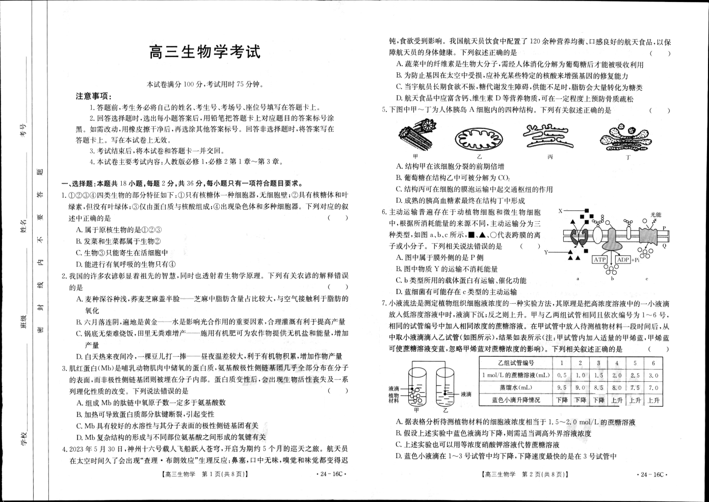 湖北省部分学校2023-2024学年高三上学期10月月考 生物