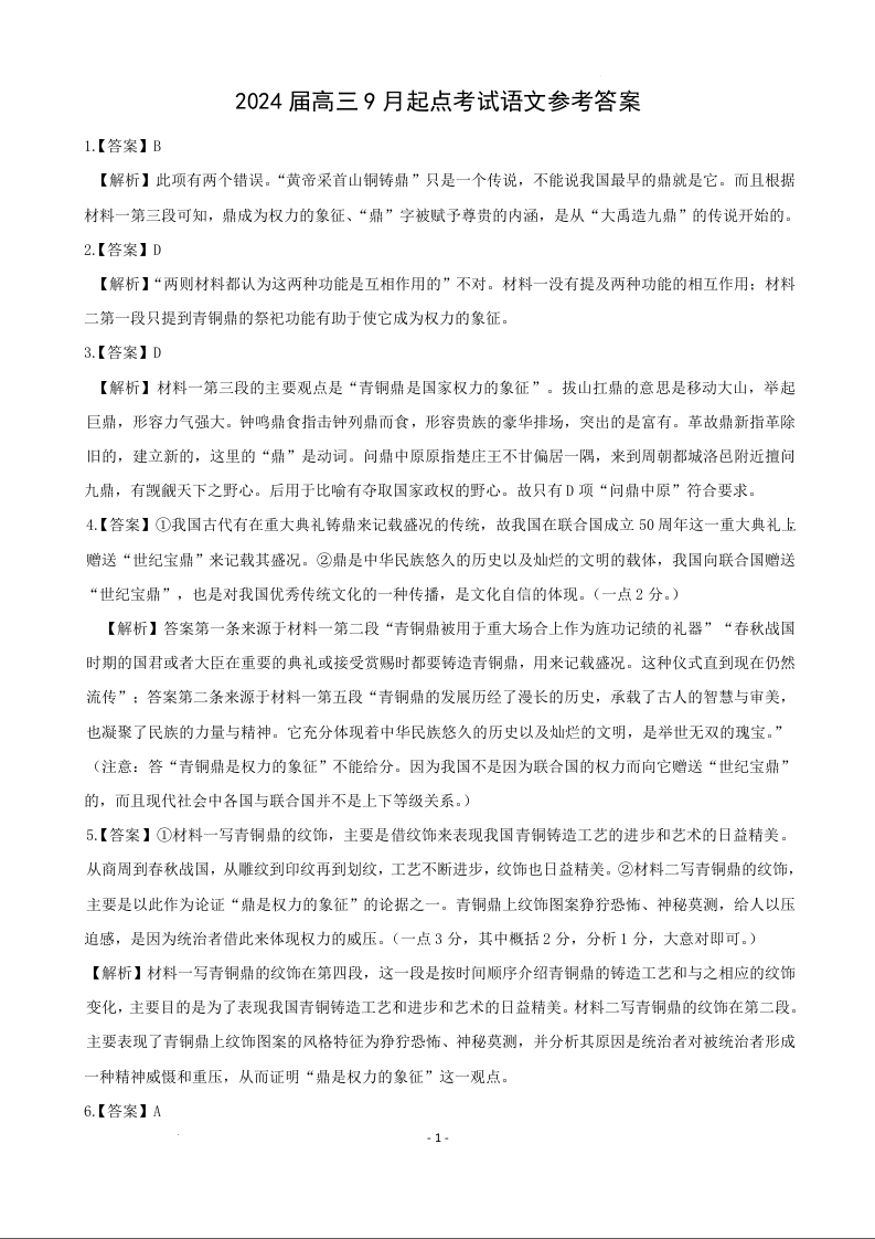 湖北省宜荆荆恩2023-2024学年高三上学期9月起点考试 语文答案