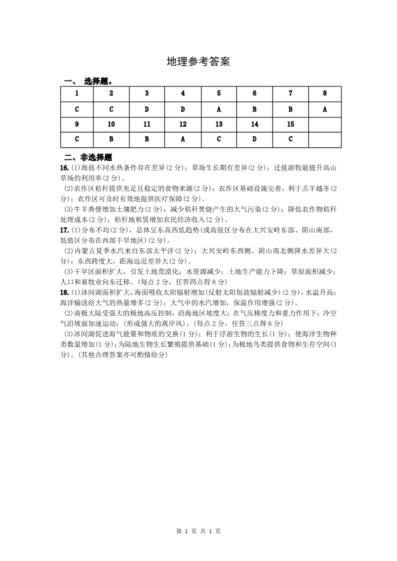 湖北省腾云联盟2023-2024学年高三上学期8月联考 地理答案