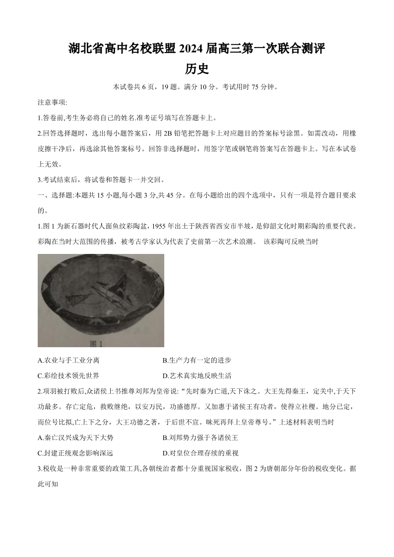 湖北省高中名校联盟2023-2024学年高三上学期第一次联合测评 历史