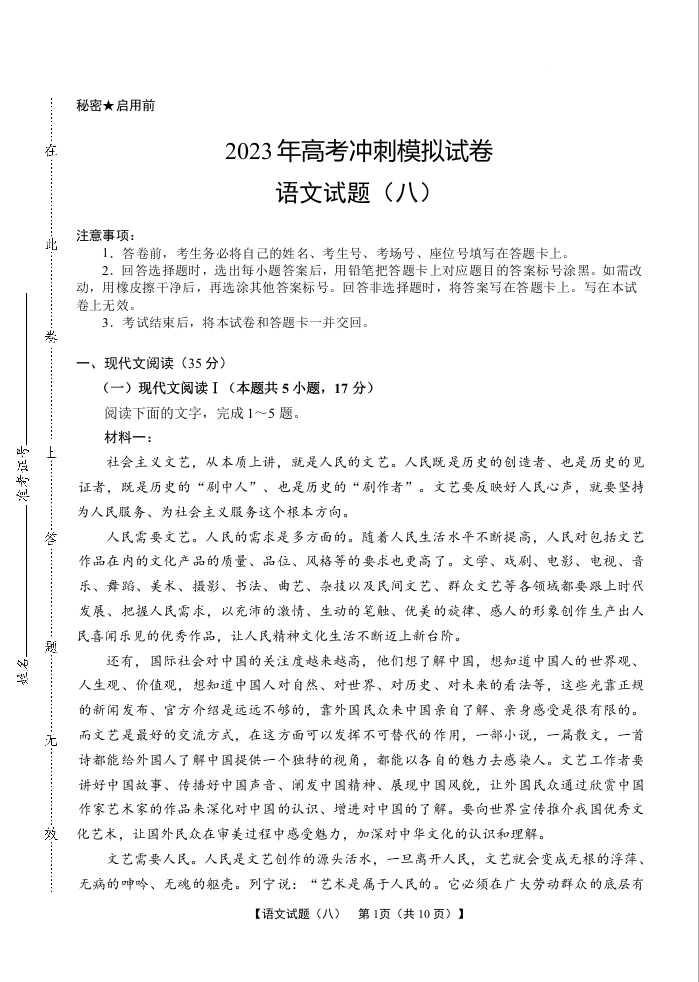 2023届湖北省高考冲刺模拟试卷语文试题(八)