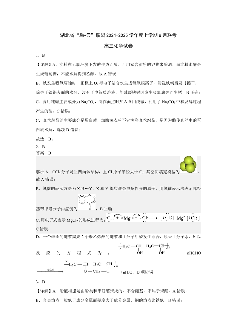 湖北省“腾·云”联盟2025届高三上学期八月联考+化学答案