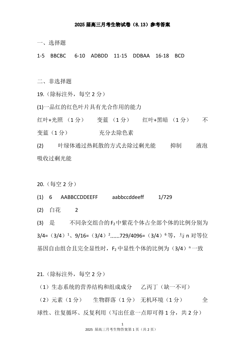 湖北省重点高中智学联盟2025届新高三8月联考考试+生物答案