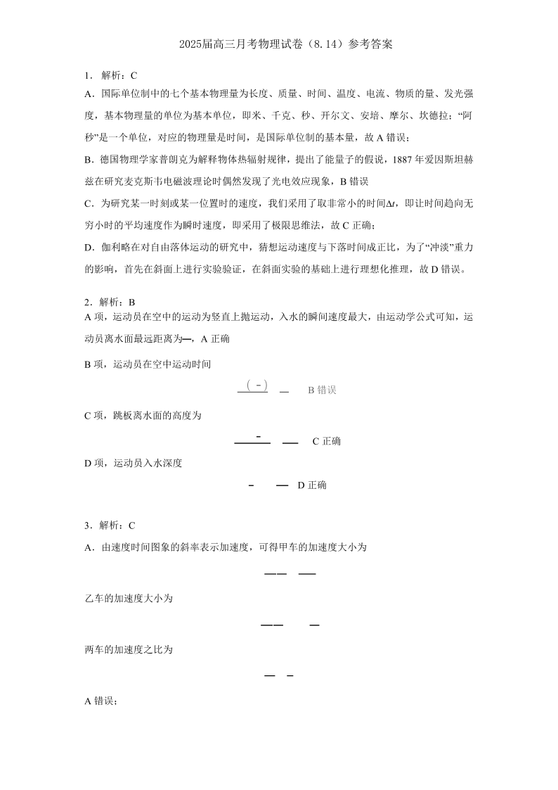 湖北省重点高中智学联盟2025届新高三8月联考考试+物理答案