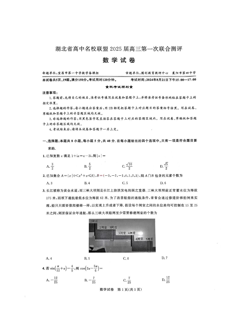 湖北省高中名校联盟2025届高三第一次联合测评+数学