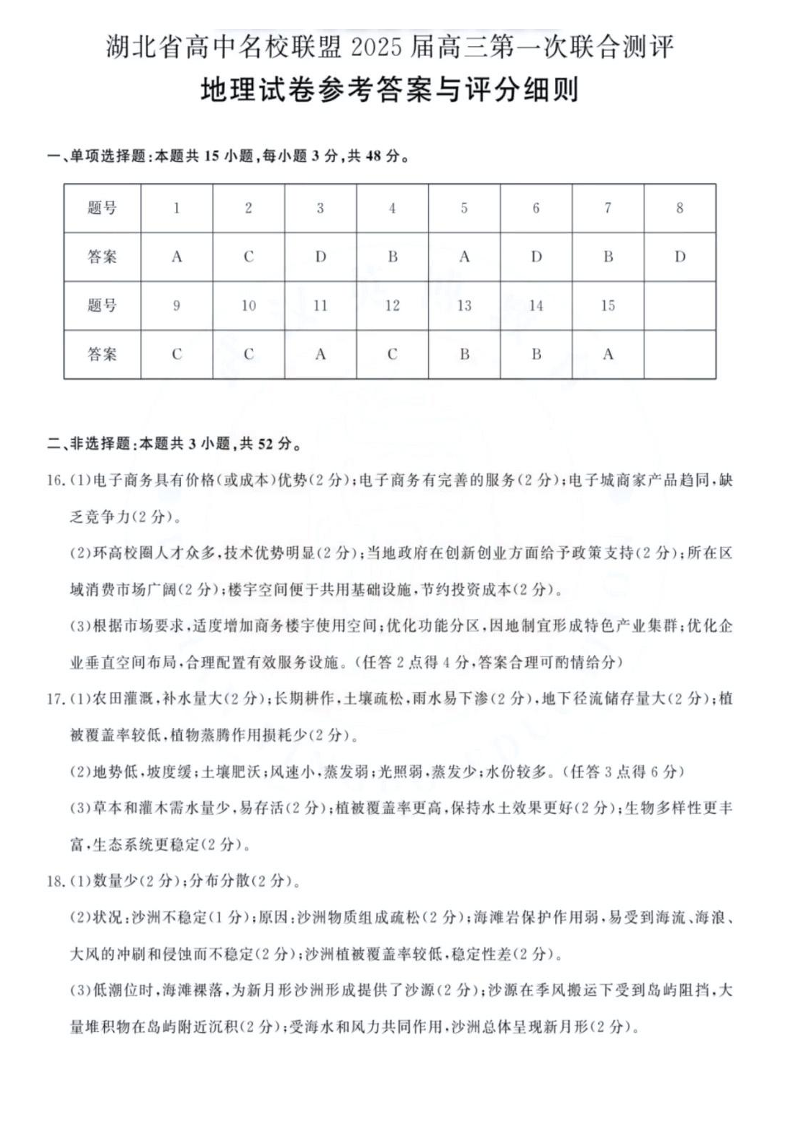 湖北省高中名校联盟2025届高三第一次联合测评+地理答案