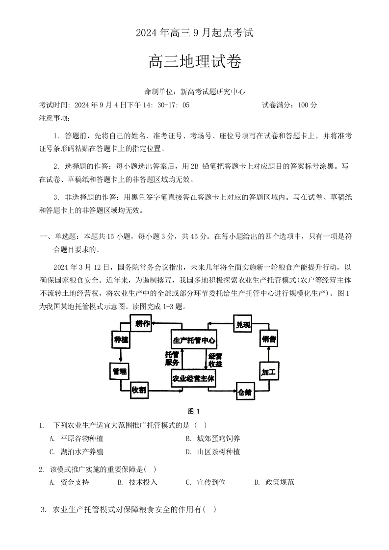湖北省新高考联考协作体2025届高三上学期开学考试+地理