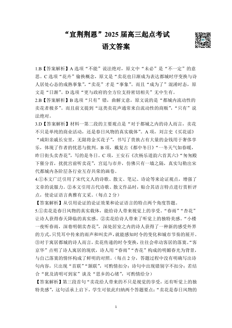 湖北省“宜荆荆恩”2025+届高三9月起点考试+语文答案
