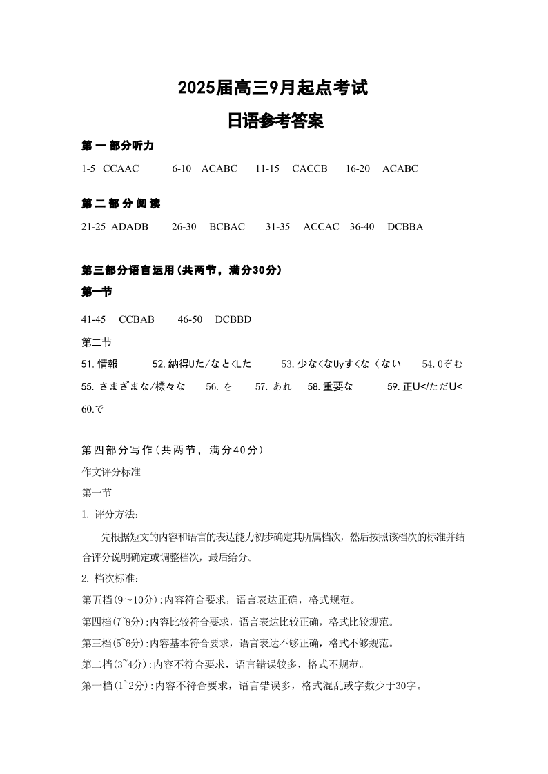 湖北省“宜荆荆恩”2025+届高三9月起点考试+日语答案