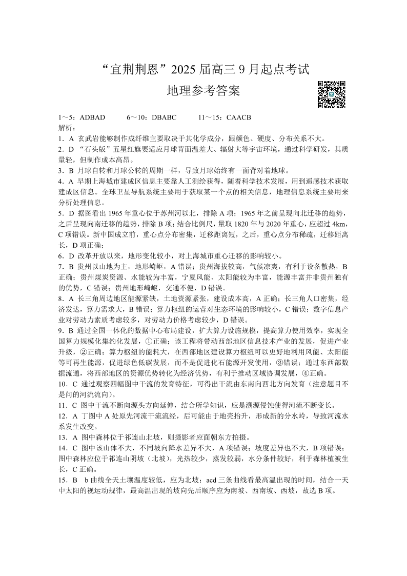 湖北省“宜荆荆恩”2025+届高三9月起点考试+地理答案