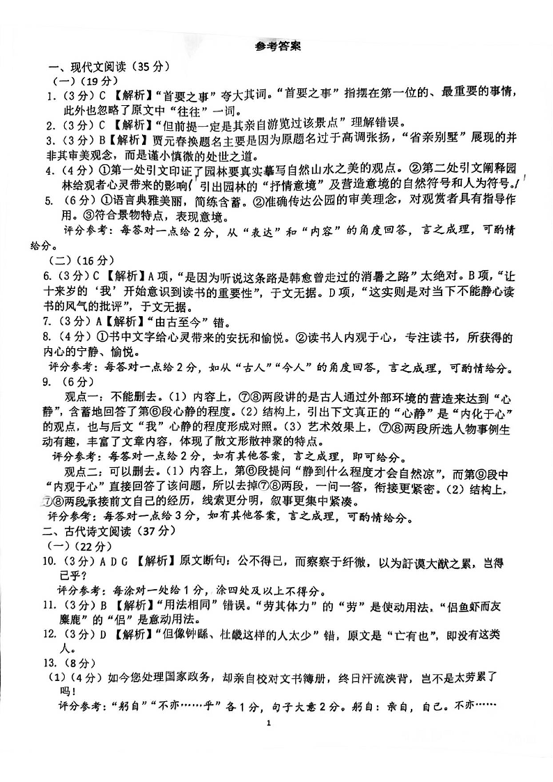 湖北省2024-2025学年度武汉市高三年级九月调研考试+语文答案