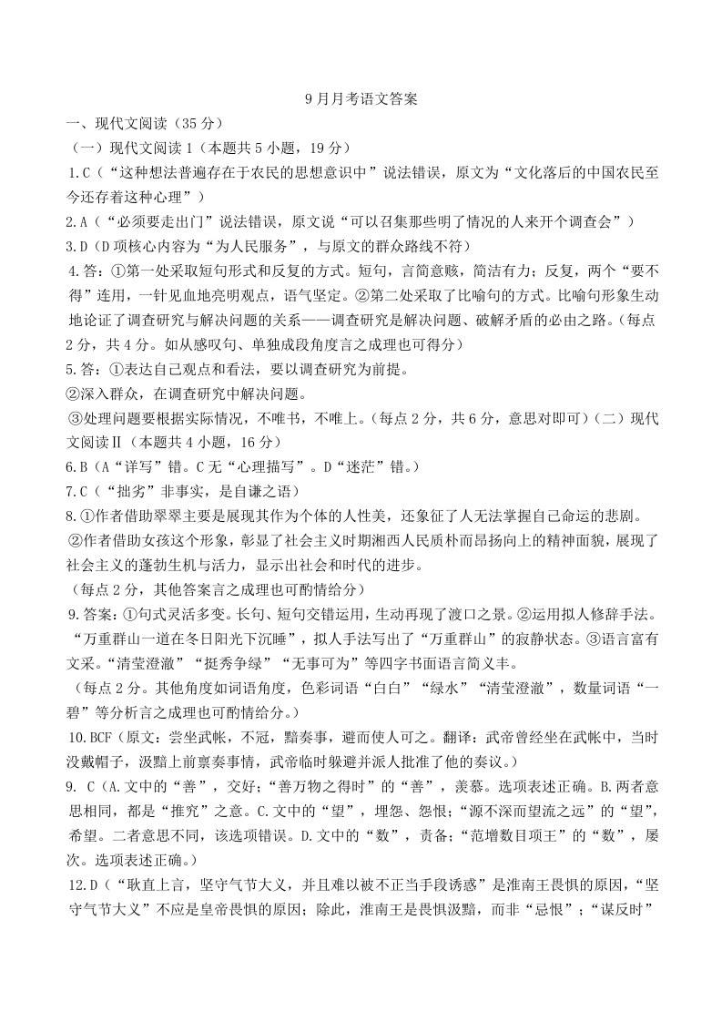 湖北省宜城市第一中学2024-2025学年高三上学期9月月考+语文答案