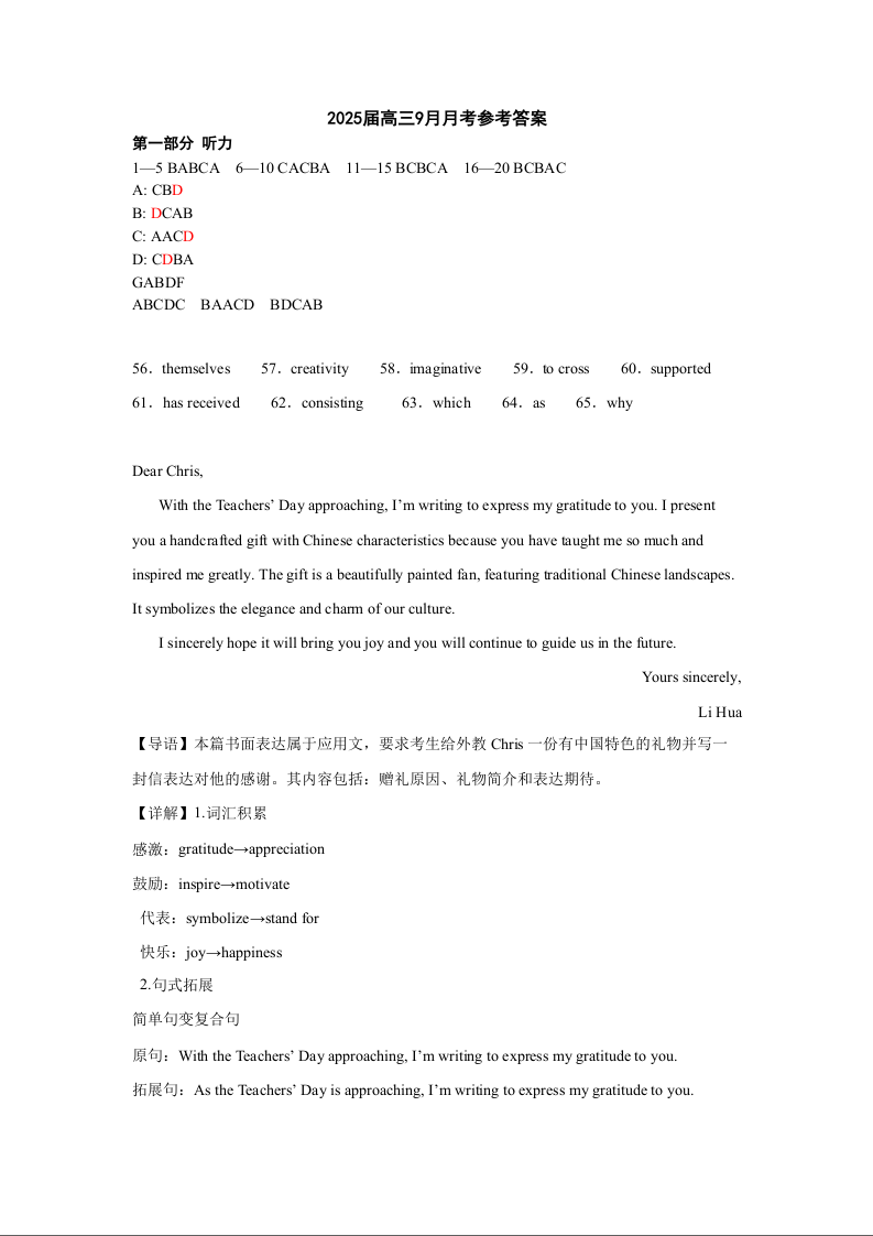 湖北省宜城市第一中学2024-2025学年高三上学期9月月考+英语答案