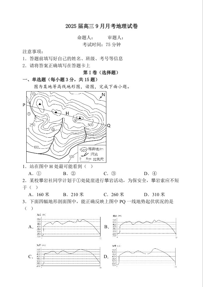 湖北省宜城市第一中学2024-2025学年高三上学期9月月考+地理