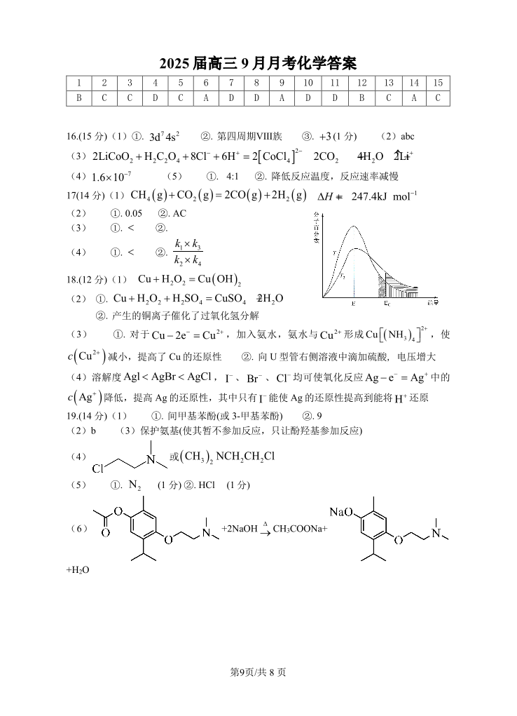湖北省宜城市第一中学2024-2025学年高三上学期9月月考+化学答案