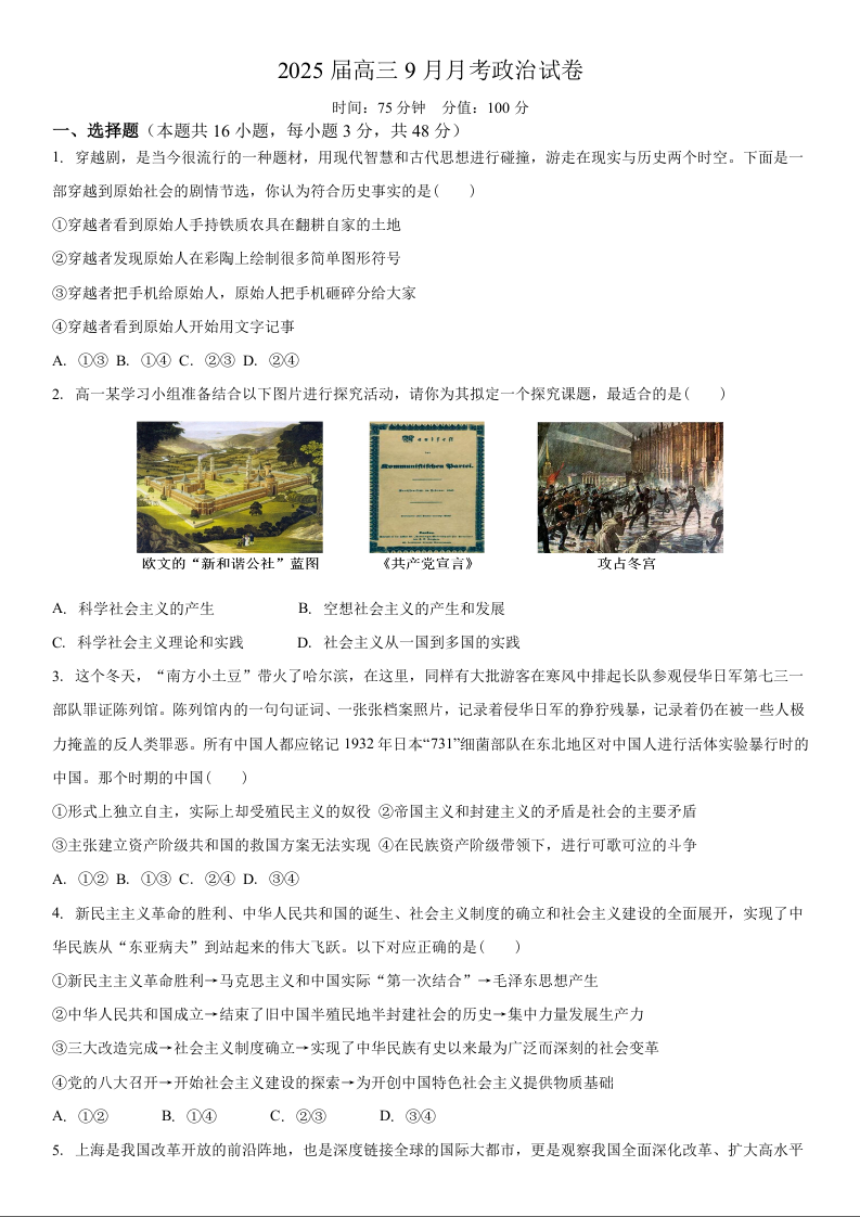 湖北省宜城市第一中学2024-2025学年高三上学期9月月考+政治