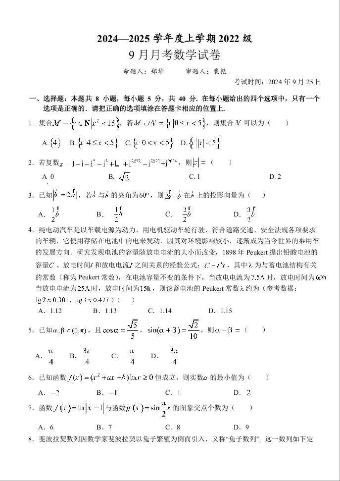 湖北省沙市中学2024-2025学年高三上学期9月月考试题+数学