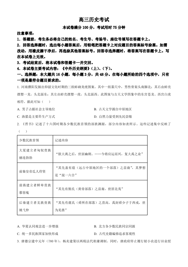 2024届湖南省衡阳市衡南县高三上学期11月期中考试 历史