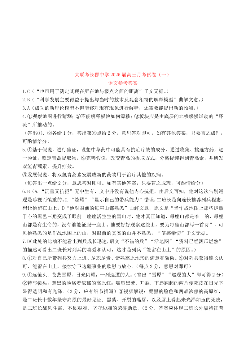 湖南省长郡中学2025届高三年级月考试卷(一)语文答案
