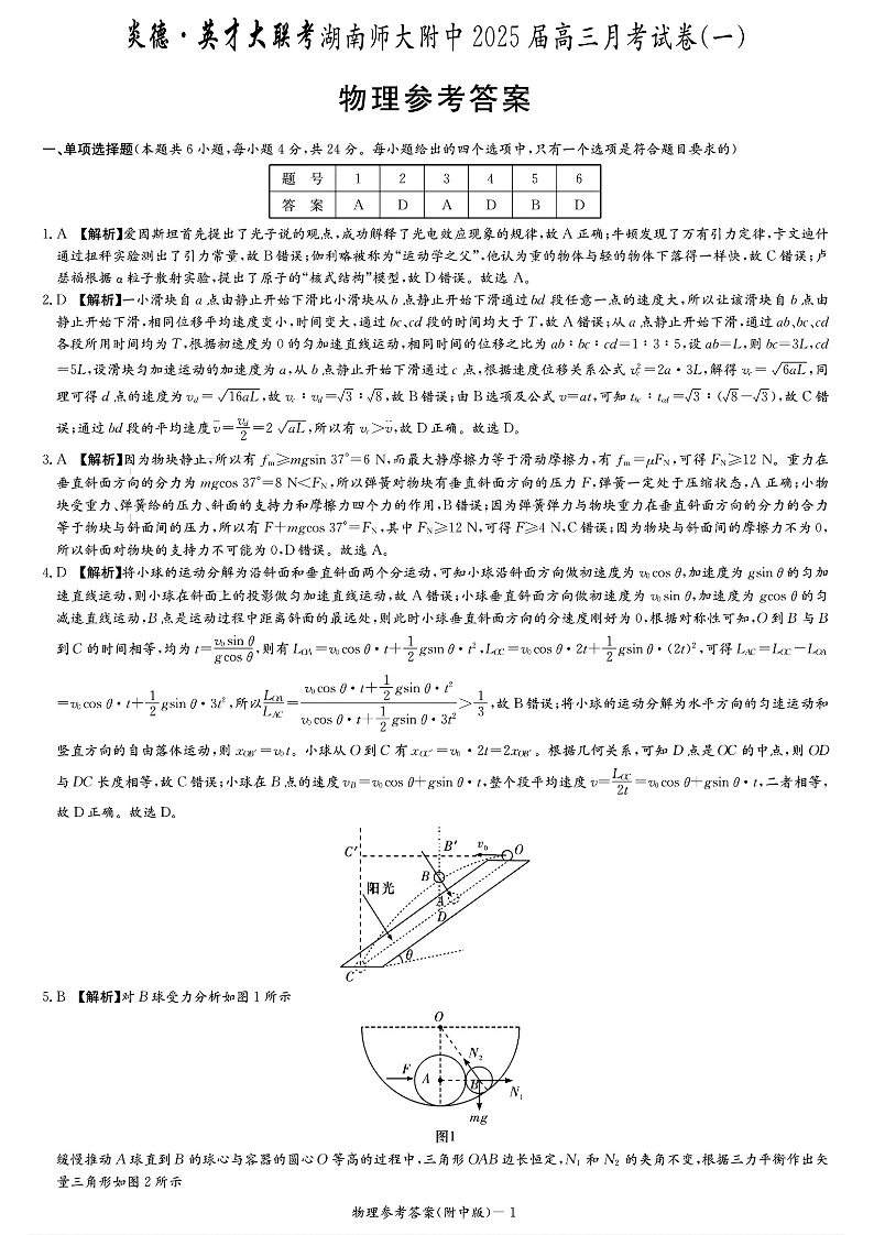 湖南师大附中2025届高三月考试卷(一)物理答案