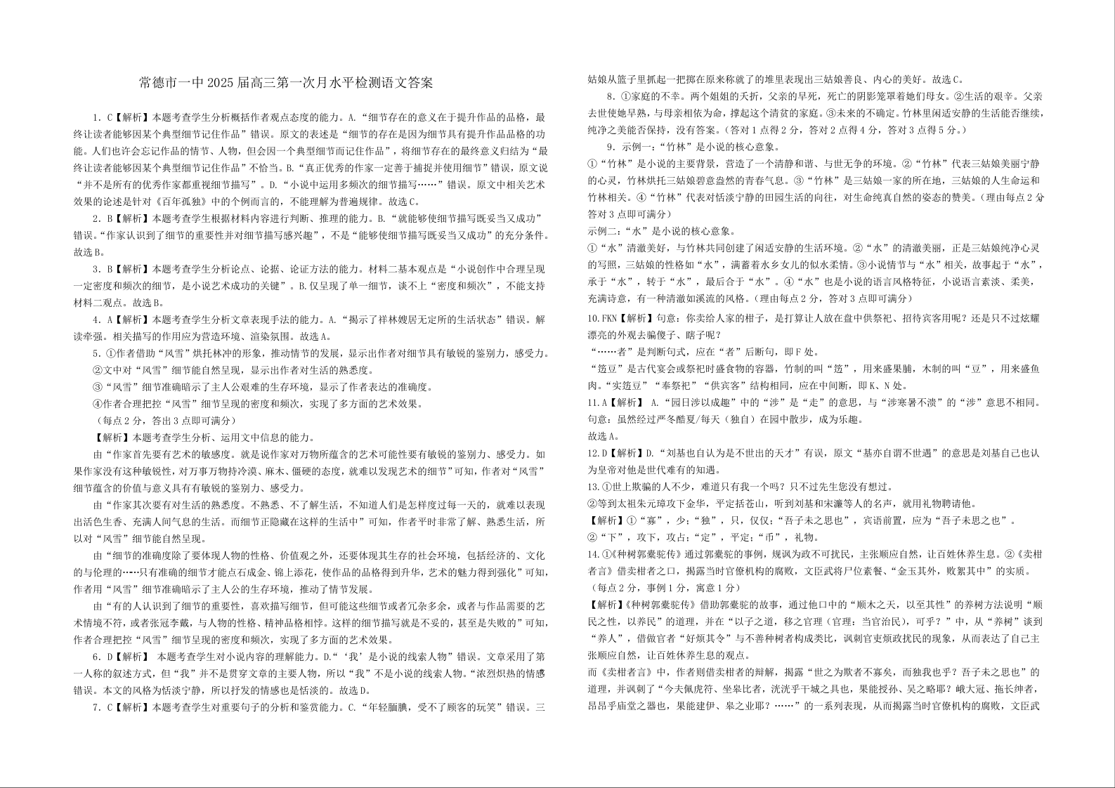 常德市一中2025届高三第一次月水平检测+语文参考答案