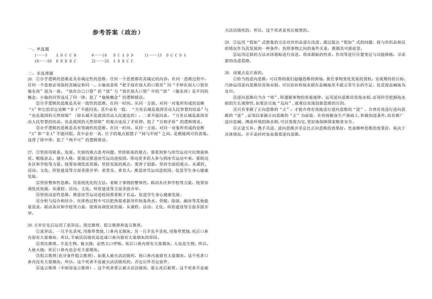 常德市一中2025届高三第一次月水平检测+政治参考答案