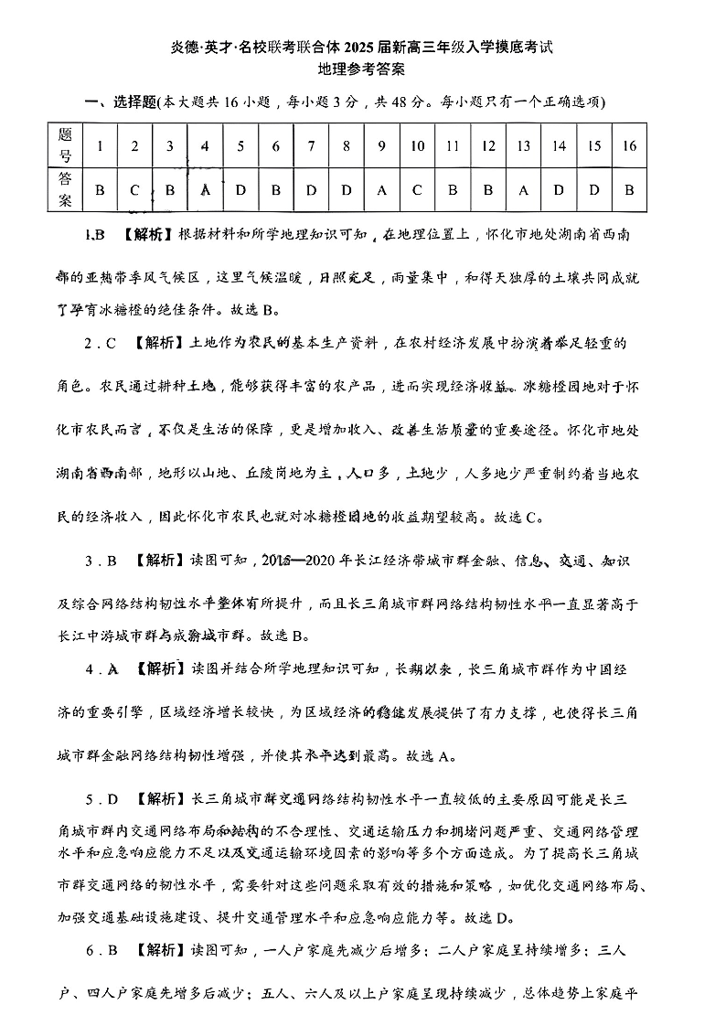 湖南省名校联合体2024-2025学年高三上学期入学摸底考试+地理答案