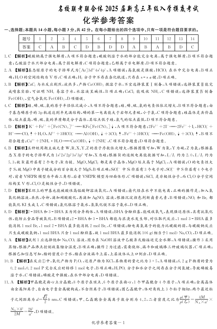 湖南省名校联合体2024-2025学年高三上学期入学摸底考试+化学答案
