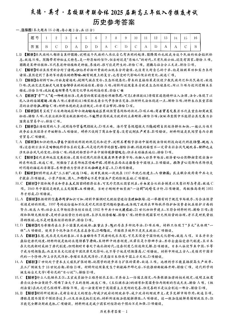湖南省名校联合体2024-2025学年高三上学期入学摸底考试+历史答案
